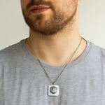 The pendant is machined from thick aircraft grade aluminum billet (6061), yielding a gorgeous relief with a hefty slab backing. The piece has been buffed to produce a natural brushed satin finish.